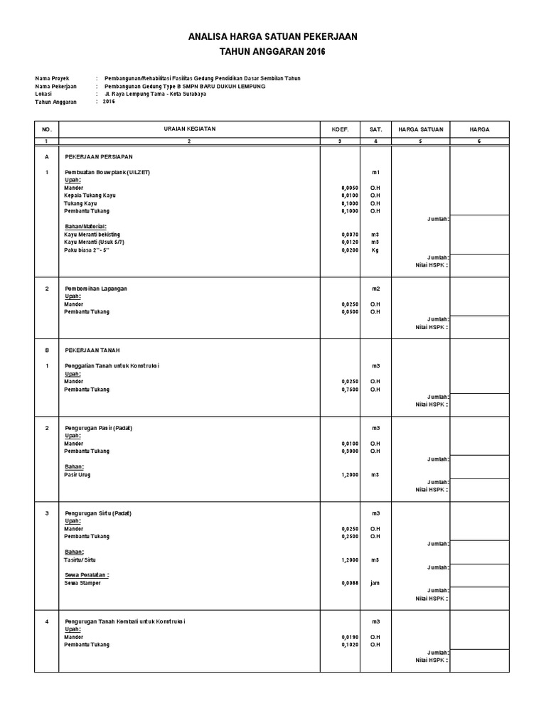 5 5 2020 Koefisien analisa harga satuan adalah angka angka jumlah kebutuhan bahan maupun tenaga yang diperlukan untuk mengerjakan suatu pekerjaan dalam satu satuan tertentu koefisien analisa harga satuan berfungsi sebagai pedoman awal perhitungan rencana anggaran biaya bangunan kondisi tersebut membuat koefisien analisa harga satuan menjadi kunci menghitung dengan tepat